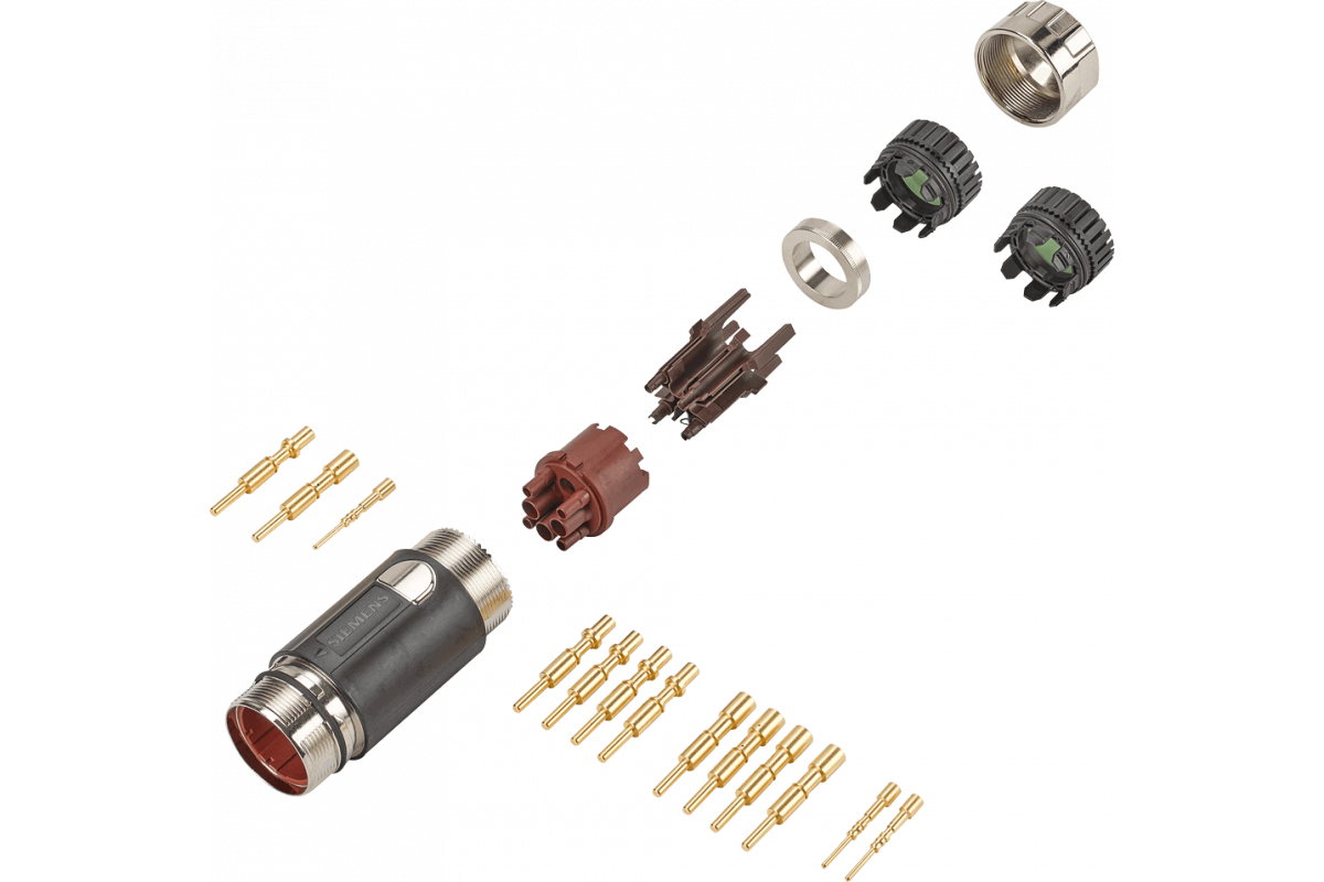 разъем питания 6-полюсный Sz. 1.5 тип: 6FX2003-0LA10 контакты, наружная резьба 1x 6-полюсный изолятор 5x контакты (1.5-4 мм2) 5х контактные контакты (6-16 мм2) 3х тормозной конт. (1-2.5 мм2) 2x кабельная клемма Пак=1 шт. для кабеля диаметром: 7 - 9 / 9 - 16 / 16 - 25