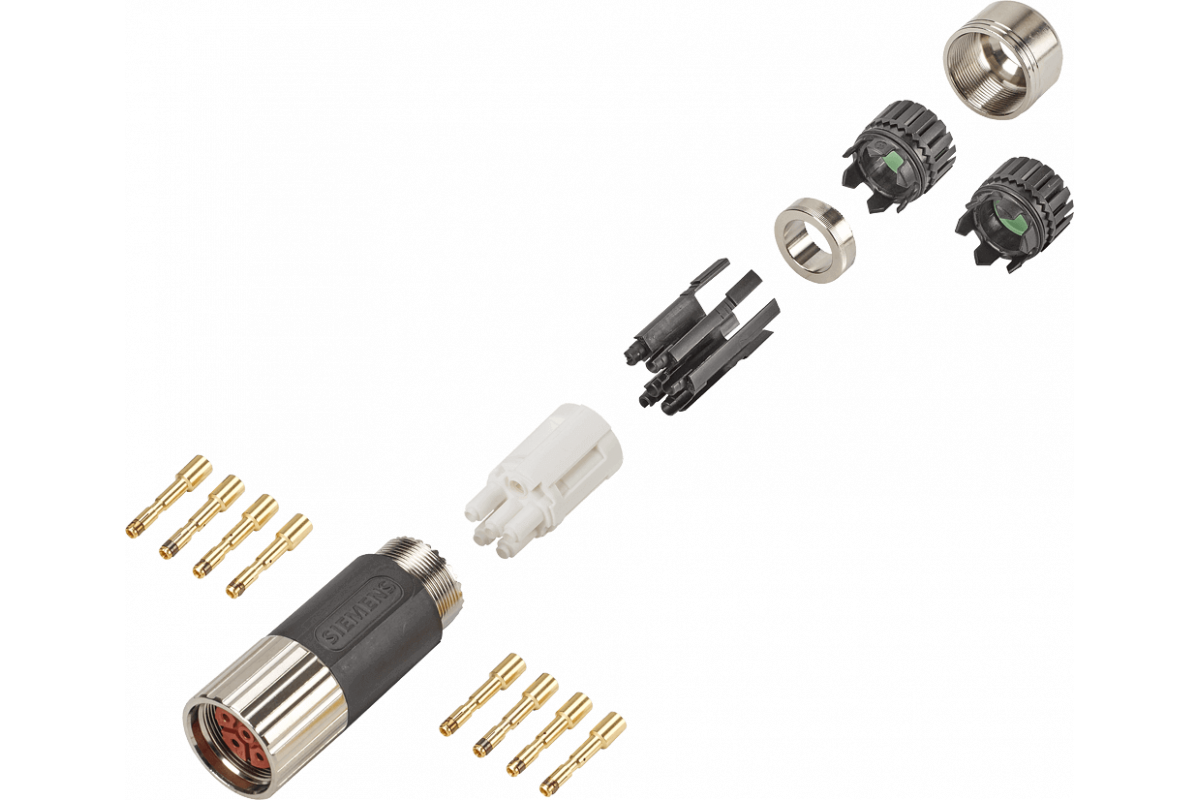 разъем питания Sz. 1 тип: 6FX2003-0LU00 6-полюсная розетка, винтовая крышка 1x 6-полюсный изолятор 8x штыревой контакт (1-2.5 мм2) 2x кабельная клемма для кабеля диаметром: 7.5 - 12 / 9 - 15