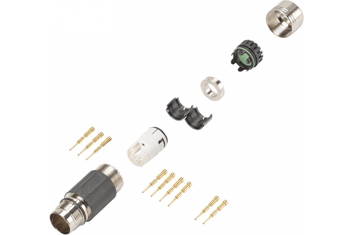 Сигнальный и силовой разъем тип: 6FX2003-0SA07 штырь с наружной резьбой Sz. 0.5 (M17) 1 x 7-полюсный изолятор 9 x штыревые контакты (0.5-1.5 мм2) для кабеля диаметром: 9.5 - 12