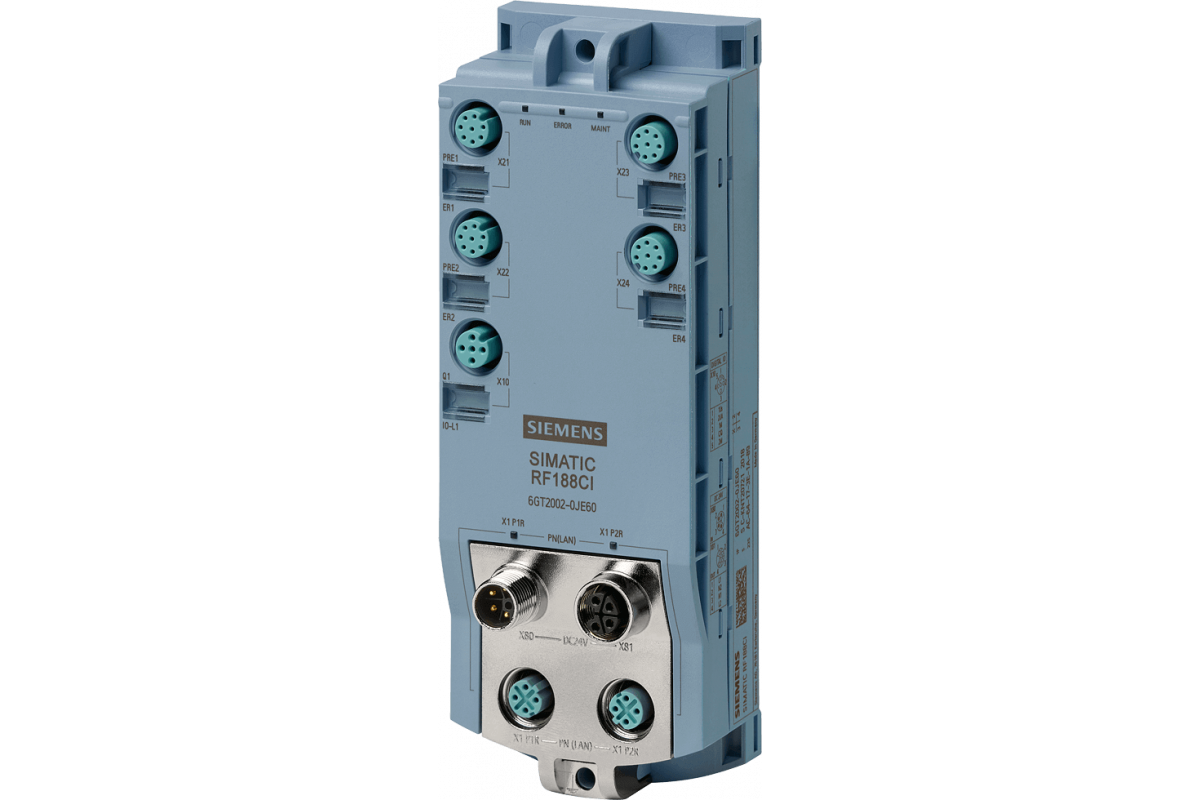 RFID коммуникационный модуль RF188CI для PROFINET, Ethernet, EtherNet/IP, возможность подключения 4 считывателей (из них макс. 2 - RF1000 / MV300), интерфейс DI/DO