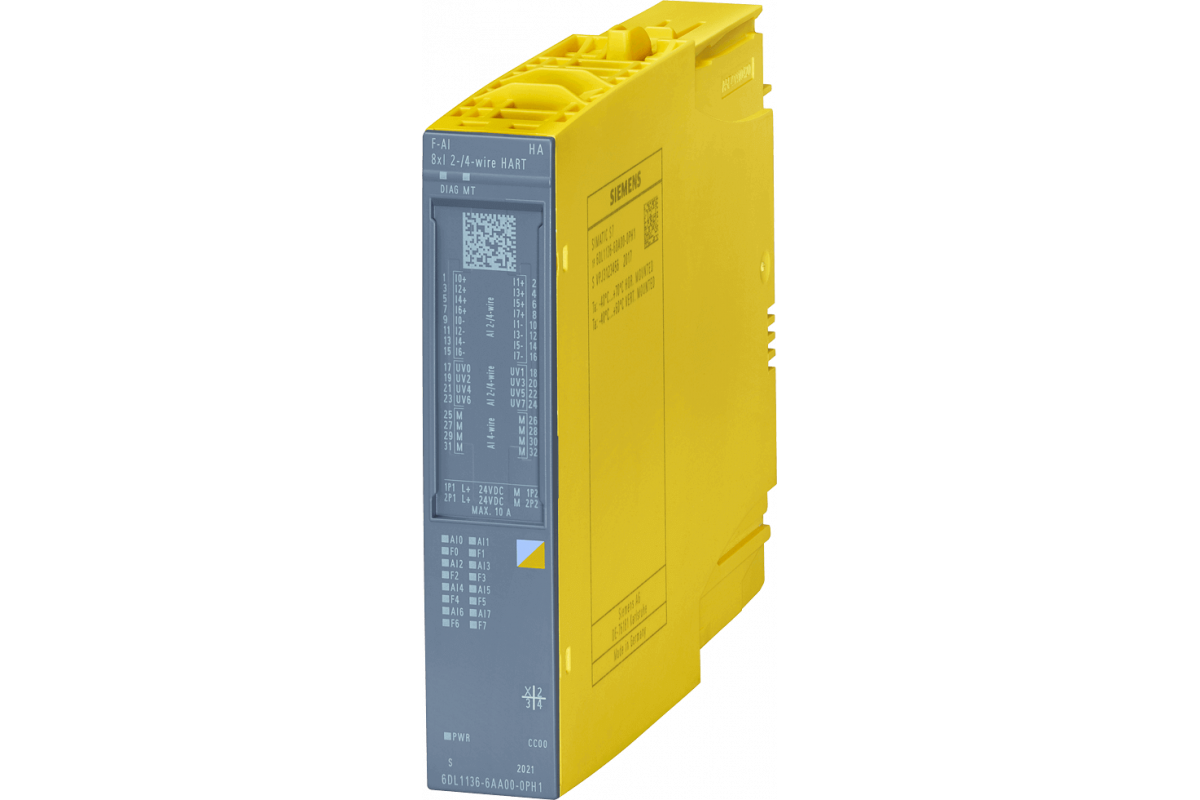 SIMATIC ET 200SP HA, аналоговый модуль ввода, ориентированный на безопасность, F-AI 8xI 2-/4-проводной HART HA, 16 бит, 2-/4-проводной, SIL3 (IEC 61508), до PL e (ISO 13849-1), подходит для клеммной колодки H1, F1, цветовой код CC00, диагностика канала