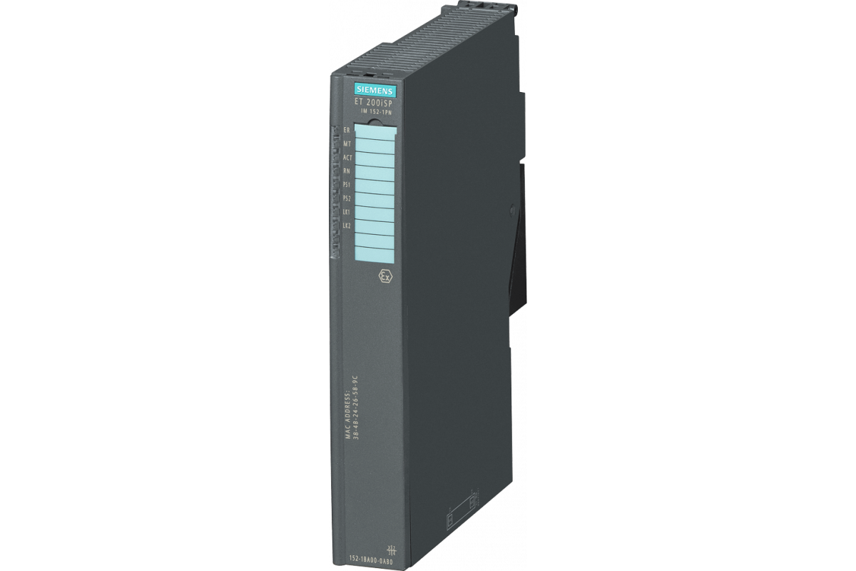 Интерфейсный модуль SIMATIC IM 152-1PN для ET200iSP, стандартное подключение PROFINET и резервирование, вкл. 2x SFP-трансивера Ex, многомодовый оптоволоконный кабель LC, 50/125 мкм и 62,5/125 мкм, Ex ib IIC T4 Gb, Ex ib I Mb