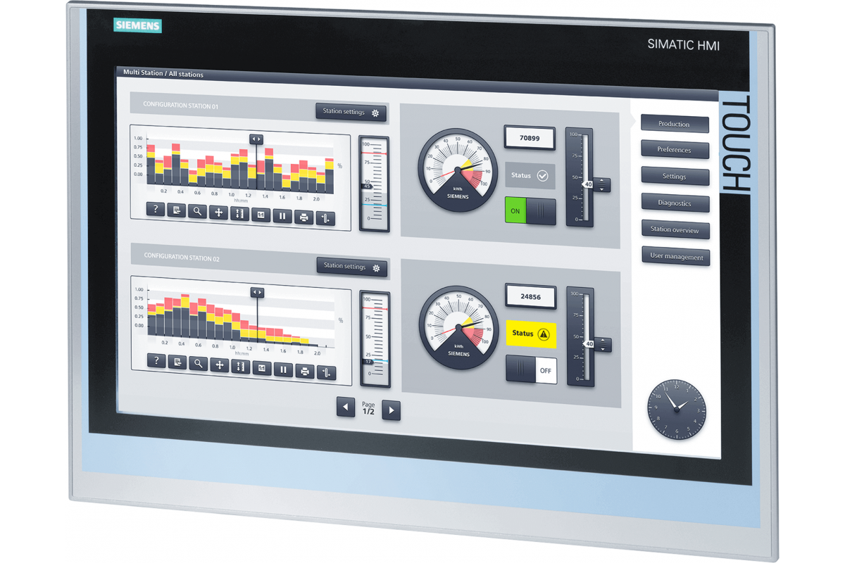 SIMATIC HMI TP1900 Comfort, панель Comfort, сенсорное управление, 19 широкоформатный TFT дисплей, 16 млн. цветов, интерфейс PROFINET, интерфейс MPI/PROFIBUS DP, 24 МБ памяти конфигурации, WEC 2013, конфигурируется из WinCC Comfort V14 SP1 с HSP