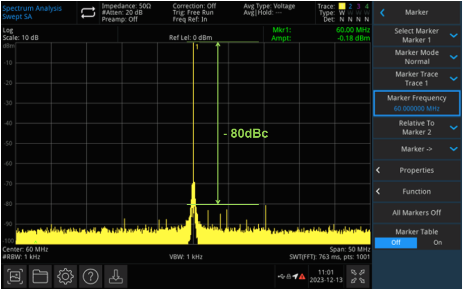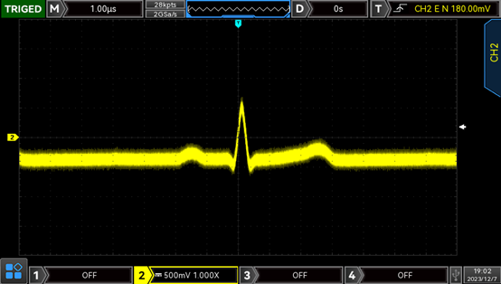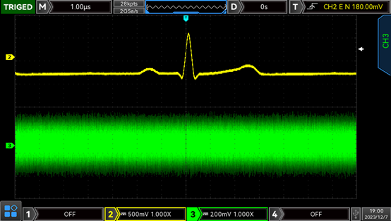 Высокий SNR Небольшой сигнал, наложенный на большой постоянный ток, приводит к снижению выходного шума и повышению отношения сигнал/шум. (Сигнал CH1 на рисунке генерируется для UTG2000X)