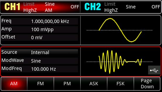 Богатые режимы модуляции Поддерживает AM, FM, PM, DSB-AM, ASK, FSK, PSK, 3FSK, 4FSK, BPSK, QPSK, OSK, SUM, QAM и ШИМ-модуляцию, всего 15 типов