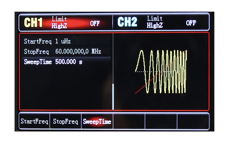 Функция развертки Тип сканирования: линейное и логарифмическое, тестовое сканирование от низкого к высокому и сканирование от высокого к низкому