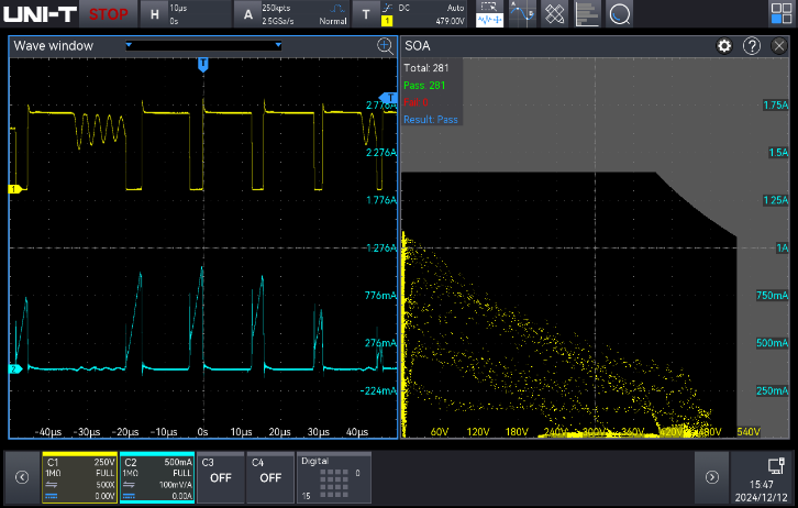 Аппаратно-ускоренное тестирование маски: стандарт 6σ < 1 с Стандарт 6σ (Шесть сигм) для электронных сигналов — это процесс с уровнем дефектности не более 3,4 дефекта на миллион возможностей (DPMO). Это означает, что на 1 000 000 образцов приходится всего 3,4 аномалии. Благодаря сверхвысокой скорости аппаратного захвата тестирование шаблонов с аппаратным ускорением сохраняет полную скорость захвата Ultra Phosphor 3.0 и позволяет выполнять проверку формы сигнала на соответствие конкретным стандартам за 1 секунду (вместо нескольких часов).