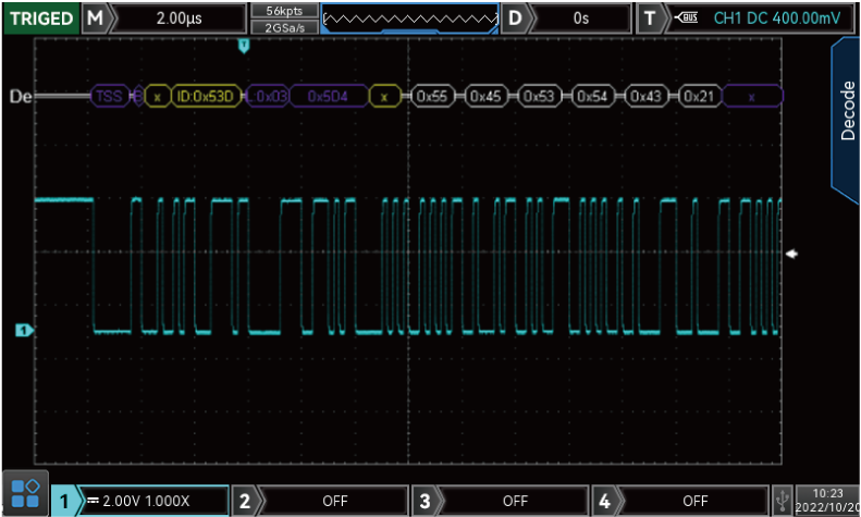Аппаратное декодирование в реальном времени При глубине памяти 56 млн точек скорость декодирования 7 протоколов снижается с десятков секунд до миллисекунд, что в сотни раз быстрее, чем при программном декодировании, и значительно повышает эффективность анализа. Записанные сигналы также поддерживают аппаратное декодирование в реальном времени.