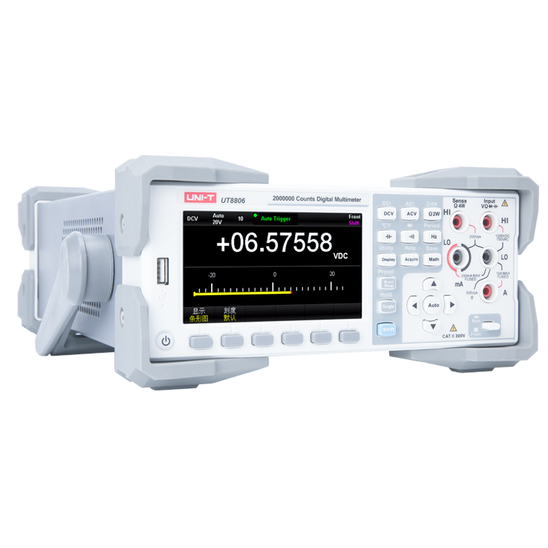 Серия UT8806 UT8806 6½-разрядный цифровой мультиметр с двойным дисплеем, обладающий выдающейся скоростью считывания и точностью, представляет собой продукт, разработанный для удовлетворения требований заказчиков к многофункциональным, высокоточным и автоматическим измерениям.В дополнение к базовым измерениям, существуют также различные математические функции и более удобный дизайн.